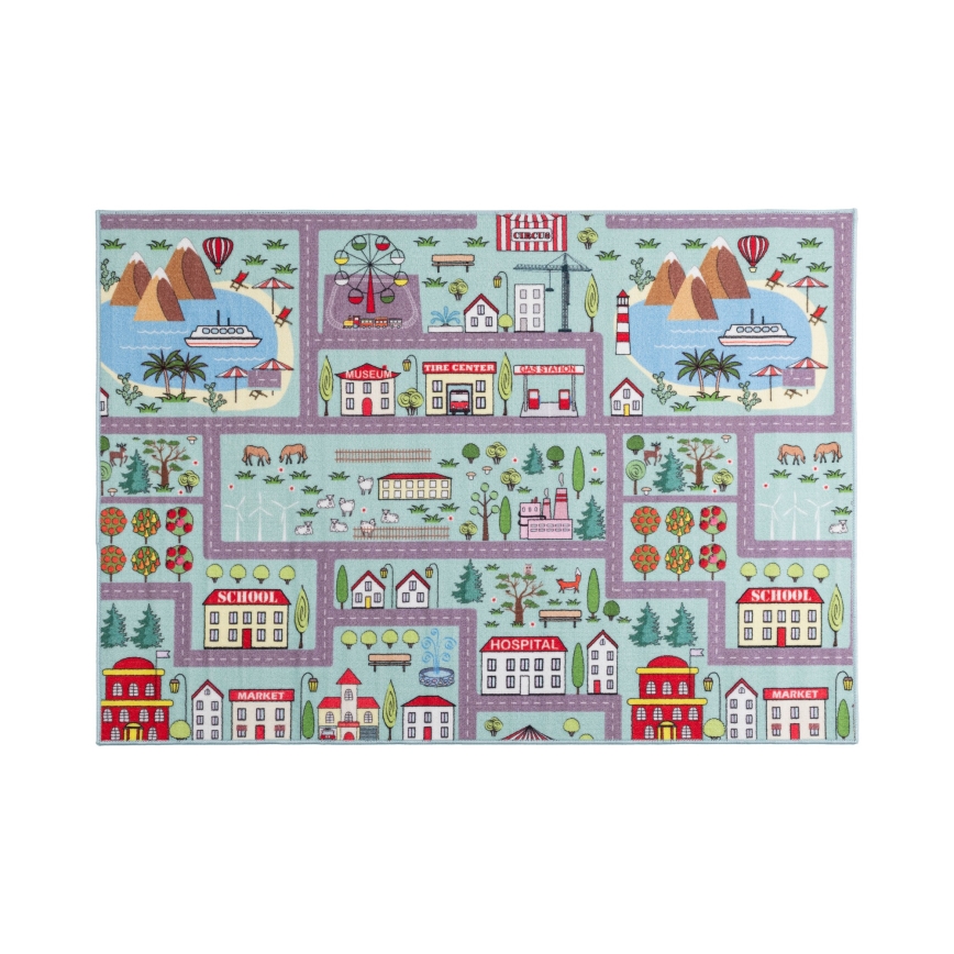 Детски килим STELLA STREETS 100x150 cm тюркоаз/град