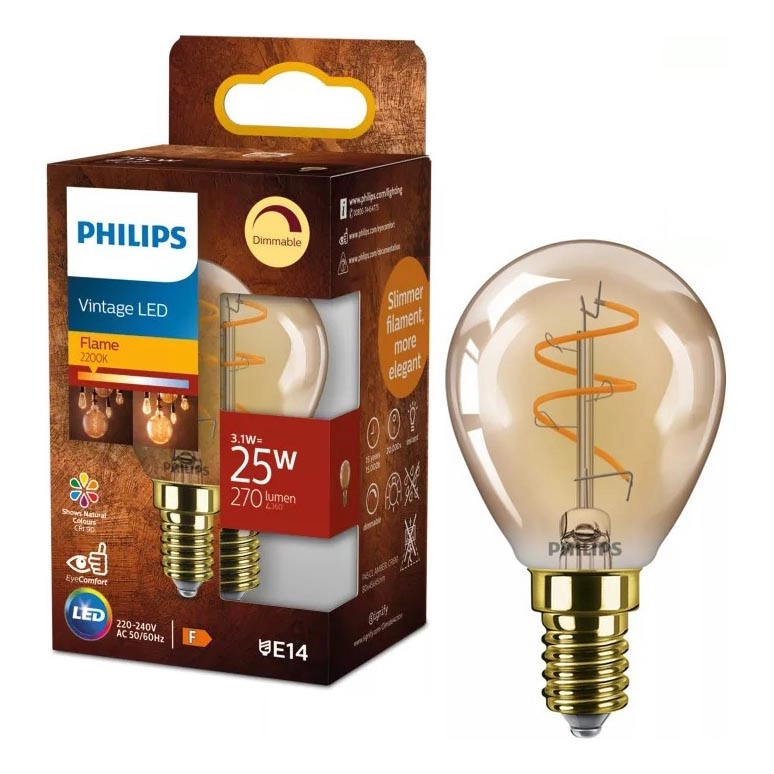 • Димируема LED крушка VINTAGE Philips P45 E14/3,1W/230V 2200K
