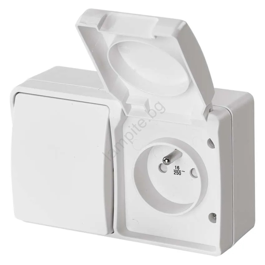 Домашен превключвател променлив ток № 6 с контакт 250V/16A IP44 бял