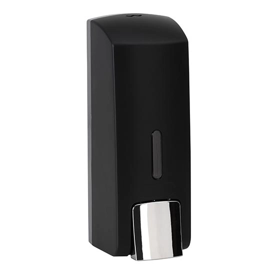 • Елегантен черен дозатор за течен сапун за модерни бани.
