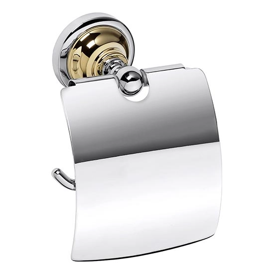 • Елегантен държач за тоалетна хартия с капак в комбинация от златисто и хром.