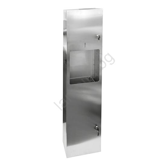 • Самостоятелен подов диспенсър за хартиени кърпи с вграден кош за отпадъци.