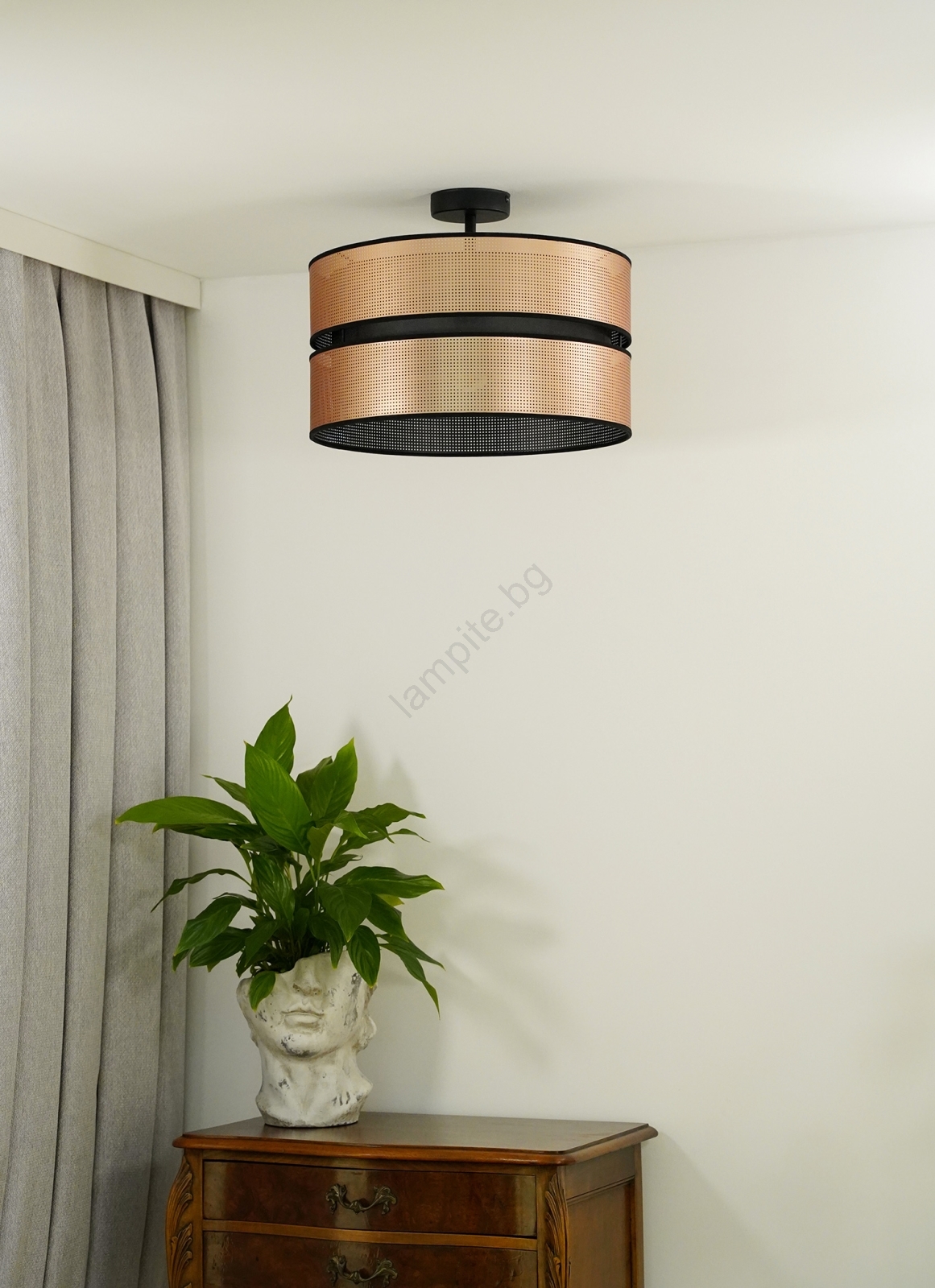 Duolla - Полилей за повърхностен монтаж COPPER SHINY 1xE27/15W/230V Ø 40 см меден/черен се отличава с приятен и функционален дизайн.  Подходяща е крушка с цокъл E27. Тук можете да закупите и други крушки на изгодни цени. Ще имате интересно допълнение към дома си.