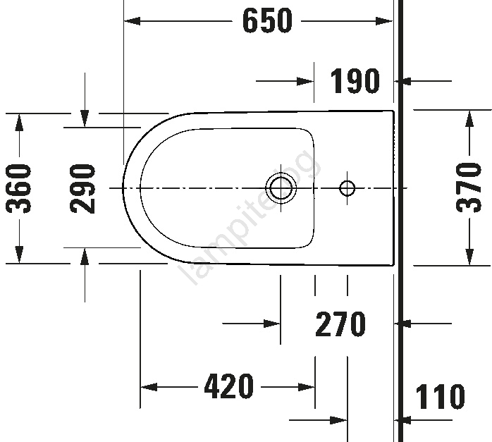 • Стоящо биде, изработено от здрава керамика с гладка повърхност за лесно почистване.