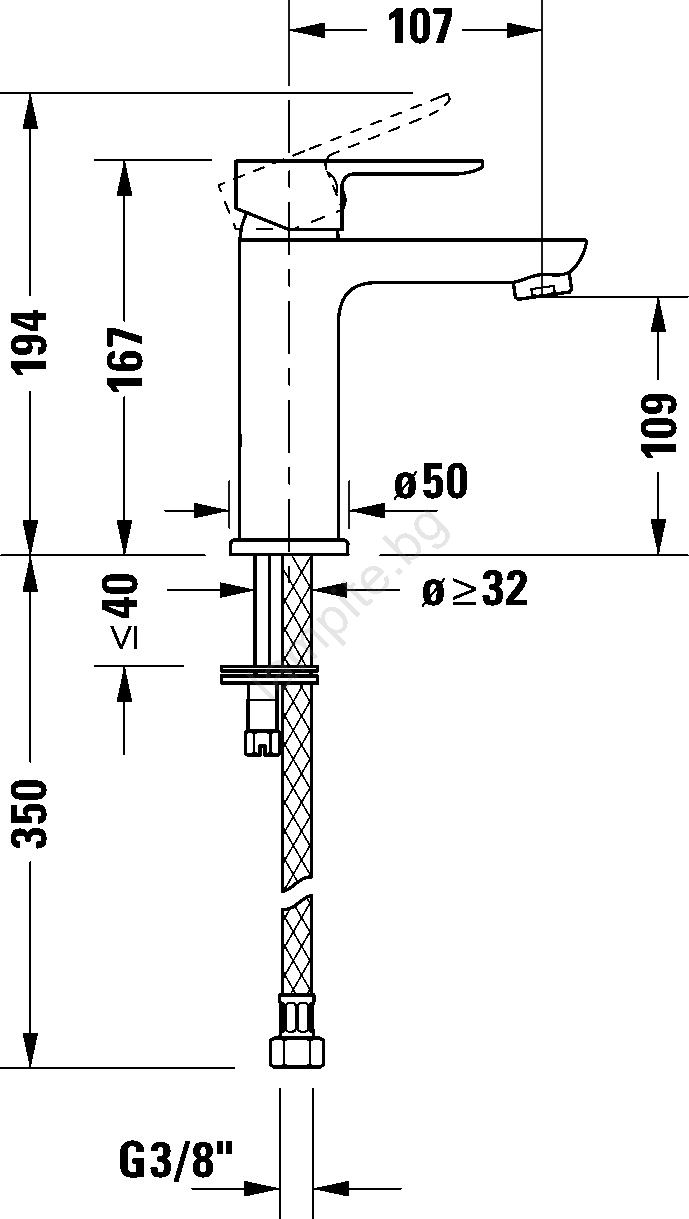 • Едноръкохватков смесител за умивалник, предназначен за монтаж върху мивката.