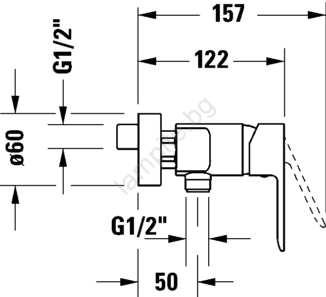 • Едноръкохватков смесител за душ, предназначен за стенен монтаж.