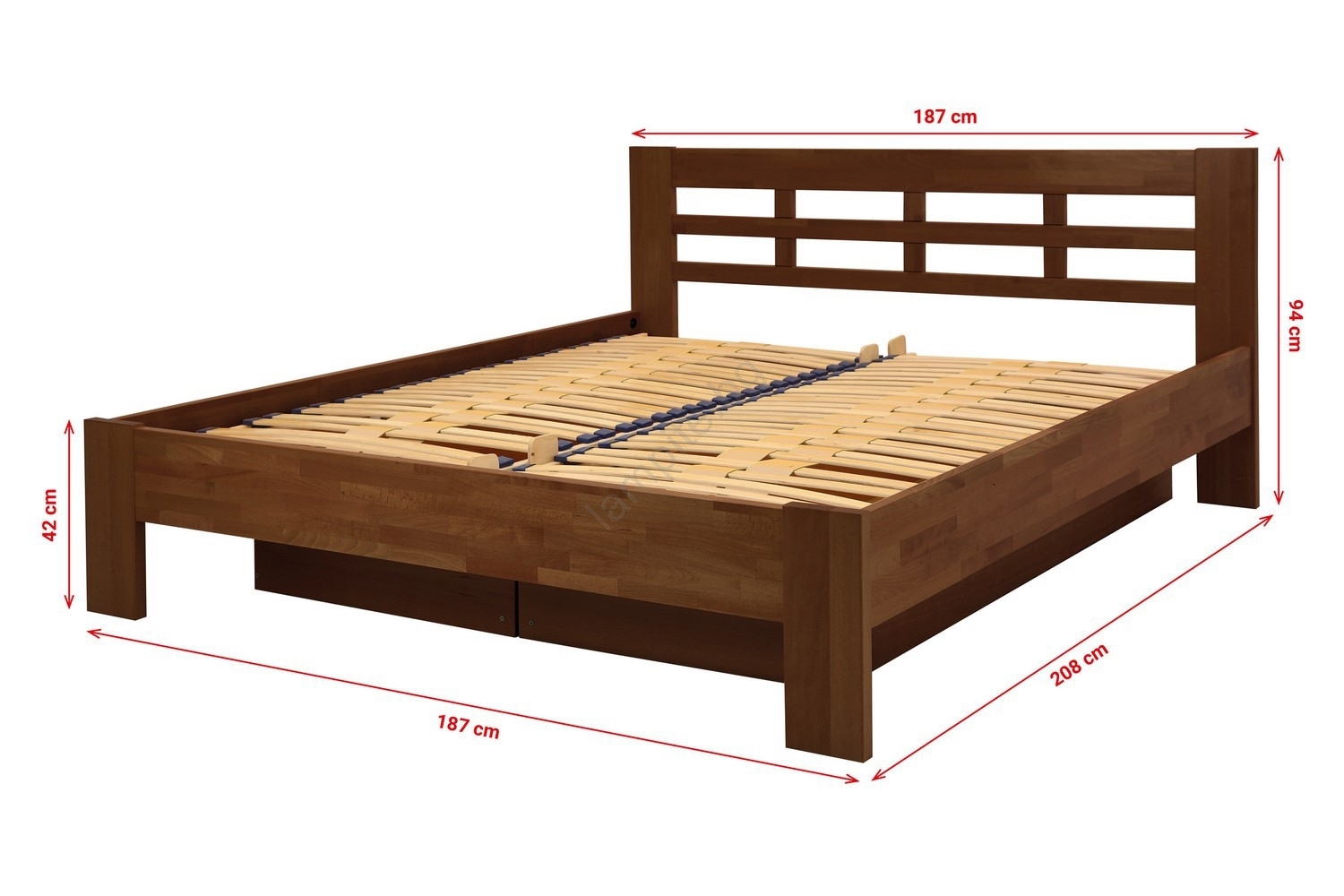 Двойно легло от масивно дърво с място за съхранение ANGELA 180x200 см в тъмен орех