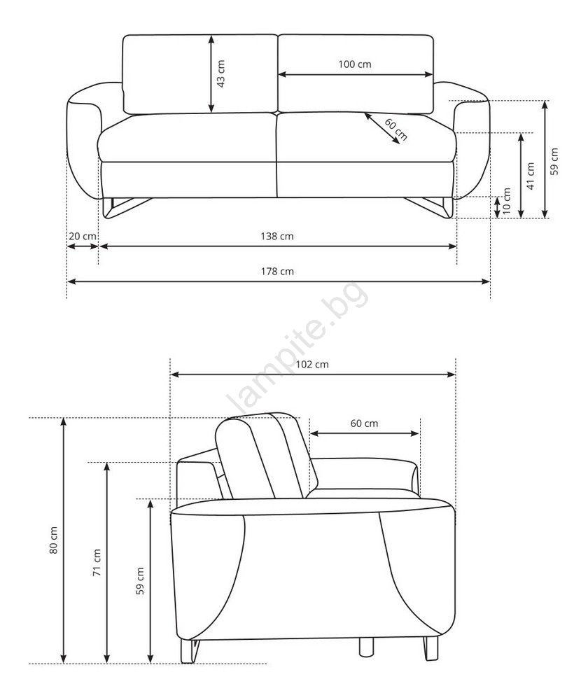 • Дълбочина на седене 60 см осигурява достатъчно пространство за отпуснато и ергономично сядане.