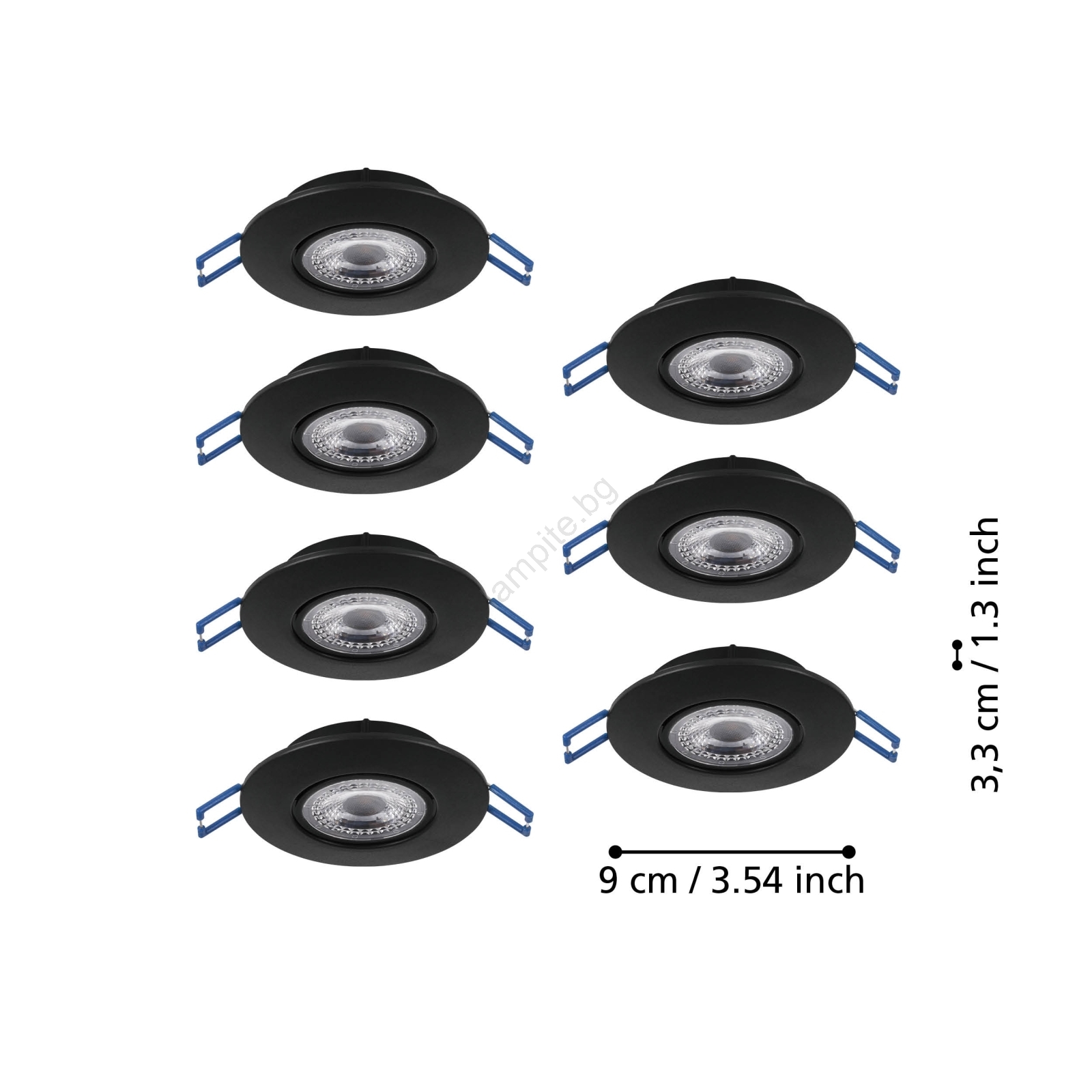 • Eglo - Комплект от 7 вградени точкови LED осветителни тела, 4,9W, 230V, 2700/4000/6500K, Ø 9 см, черно