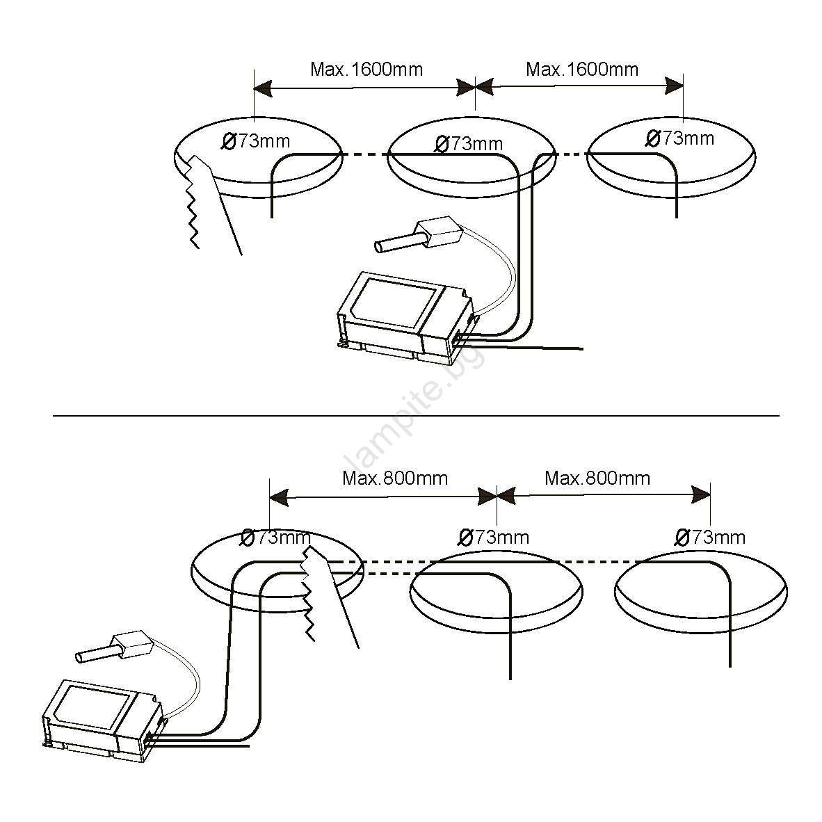 • Осветителните тела могат да се управляват едновременно с дистанционно и мобилен телефон.