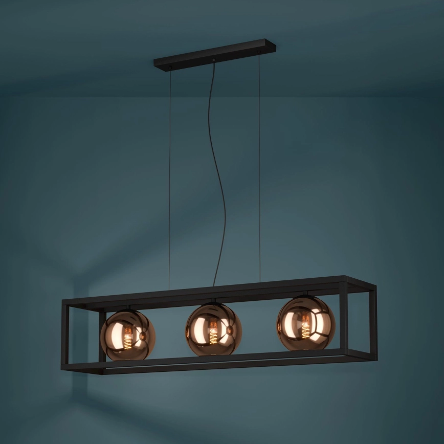 Eglo - Пендел 3xE27/40W/230V меден/черен