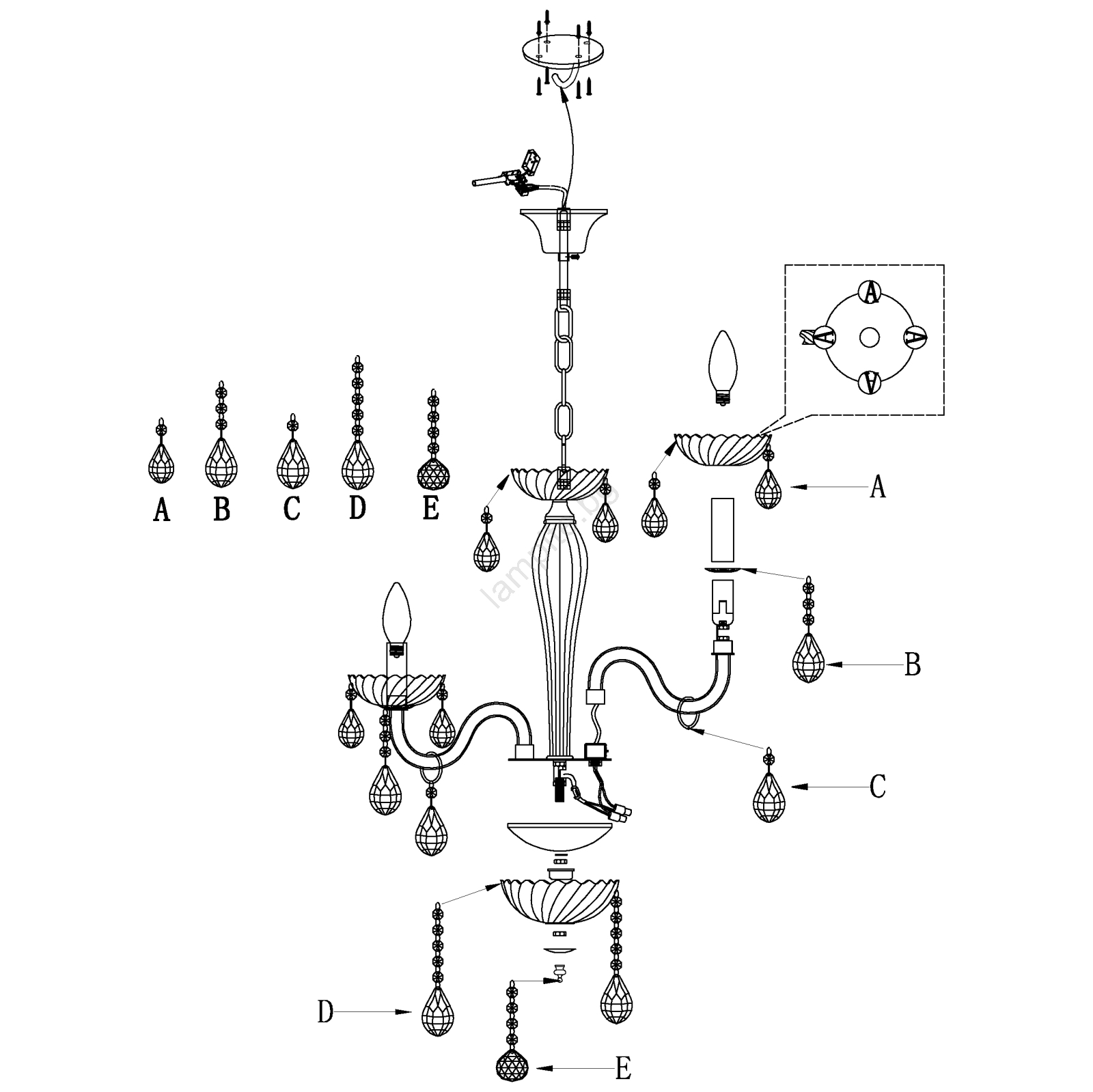 Eglo 39113- Полилей CARPENTO 5xE14/40W/230V