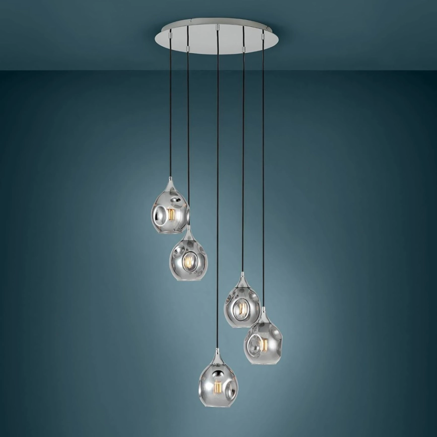 Eglo 39682 - Пендел на кабел BREGALLA 5xE27/40W/230V черен/димчат се отличава с приятен и функционален дизайн.  Подходяща е крушка с цокъл E27. Тук можете да закупите и други крушки на изгодни цени. Ще имате интересно допълнение към дома си.
