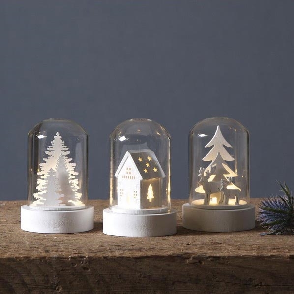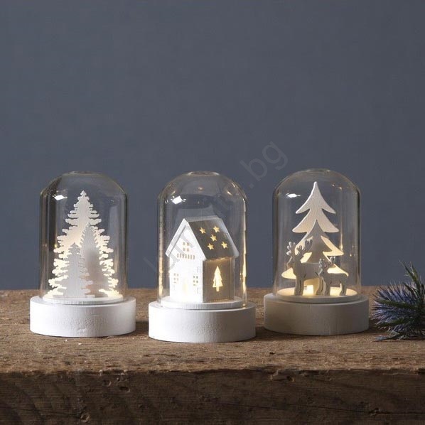 • Комплект от LED Коледни декорации с дървени фигурки в тях.