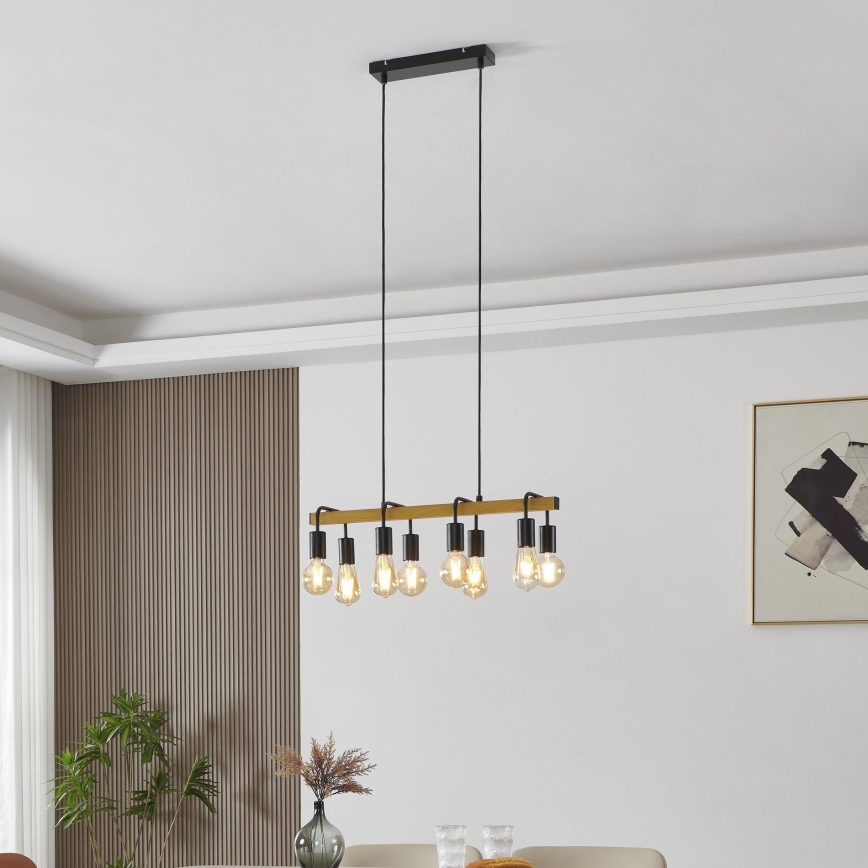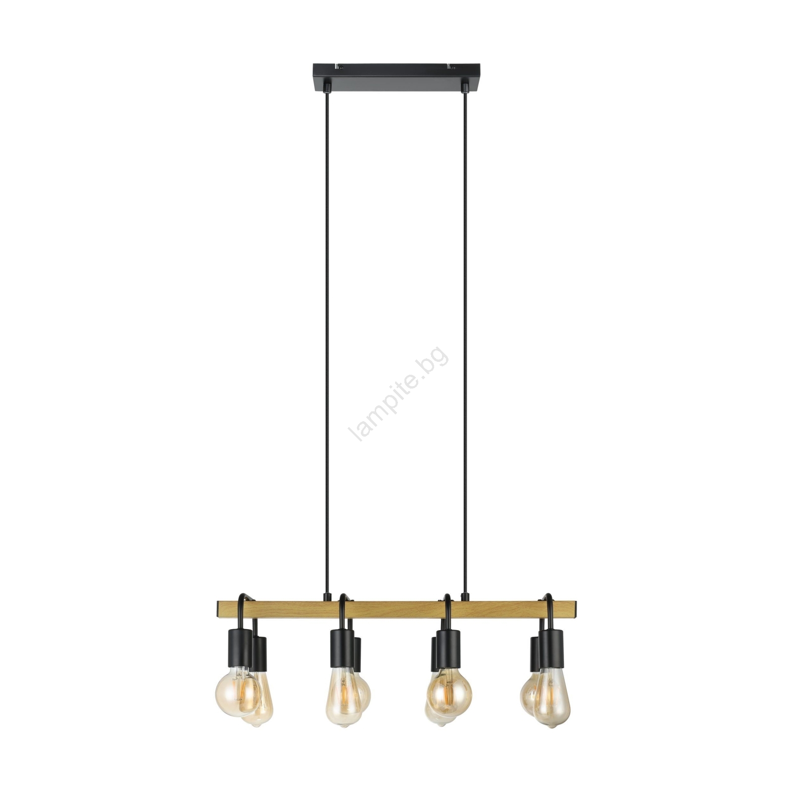 Eglo 43316 - Полилей на кабел ERRIBERA 8xE27/40W/230V дъб/черен се отличава с приятен и функционален дизайн.  Подходяща е крушка с цокъл E27. Тук можете да закупите и други крушки на изгодни цени. Ще имате интересно допълнение към дома си.