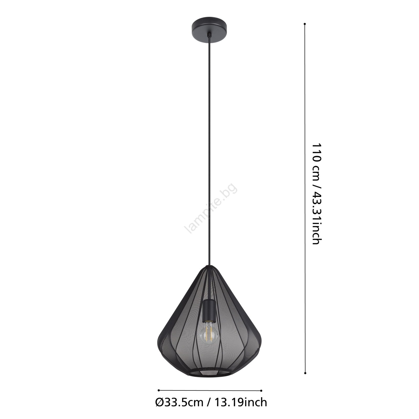 Eglo - Пендел 1xE27/40W/230V Ø 33,5 см черен се отличава с приятен и функционален дизайн.  Подходяща е крушка с цокъл E27. Тук можете да закупите и други крушки на изгодни цени. Ще имате интересно допълнение към дома си.