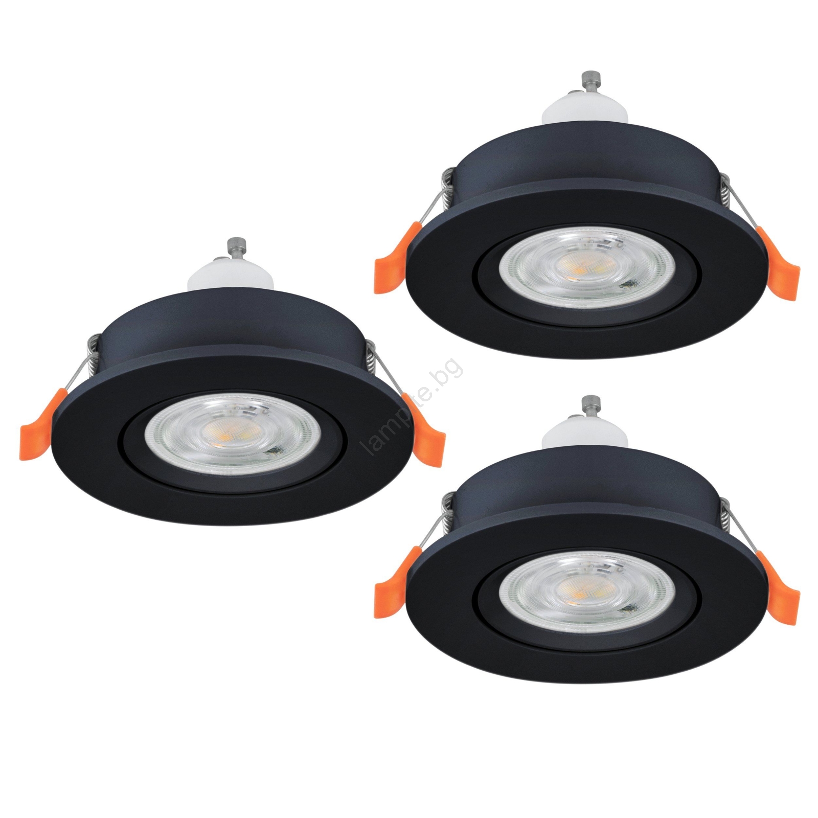 • Eglo - Комплект от 3 вградени точкови LED осветителни тела за баня 1xGU10/4,5W/230V IP44 черно
