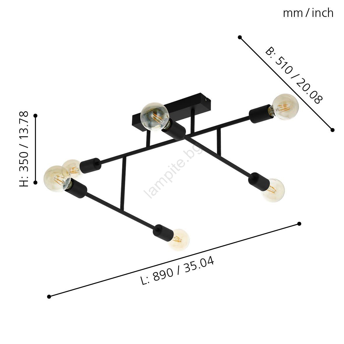 Eglo - повърхностно монтиран Полилей 6xE27/40W/230V черна се отличава с приятен и функционален дизайн.  Подходяща е крушка с цокъл E27. Тук можете да закупите и други крушки на изгодни цени. Ще имате интересно допълнение към дома си.