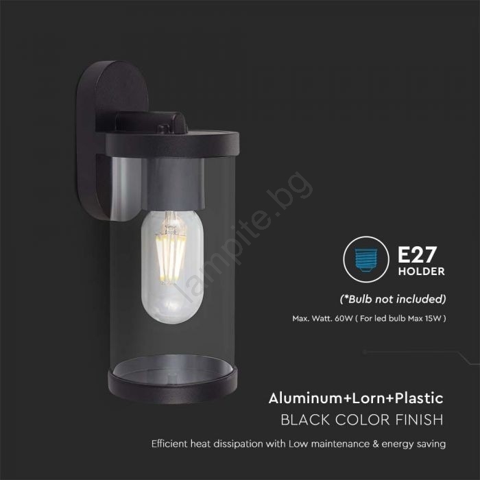 Екстериорен аплик 1xE27/60W/230V IP44 черен се отличава с приятен и функционален дизайн.  Подходяща е крушка с цокъл E27. Тук можете да закупите и други крушки на изгодни цени. Ще имате интересно допълнение към дома си.