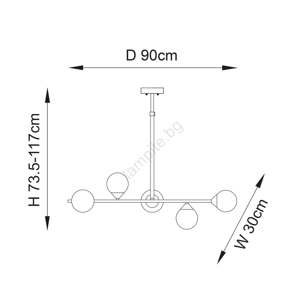 Endon 101348 - Полилей на щанга OTIS 5xG9/3W/230V черен хром/опушено черно