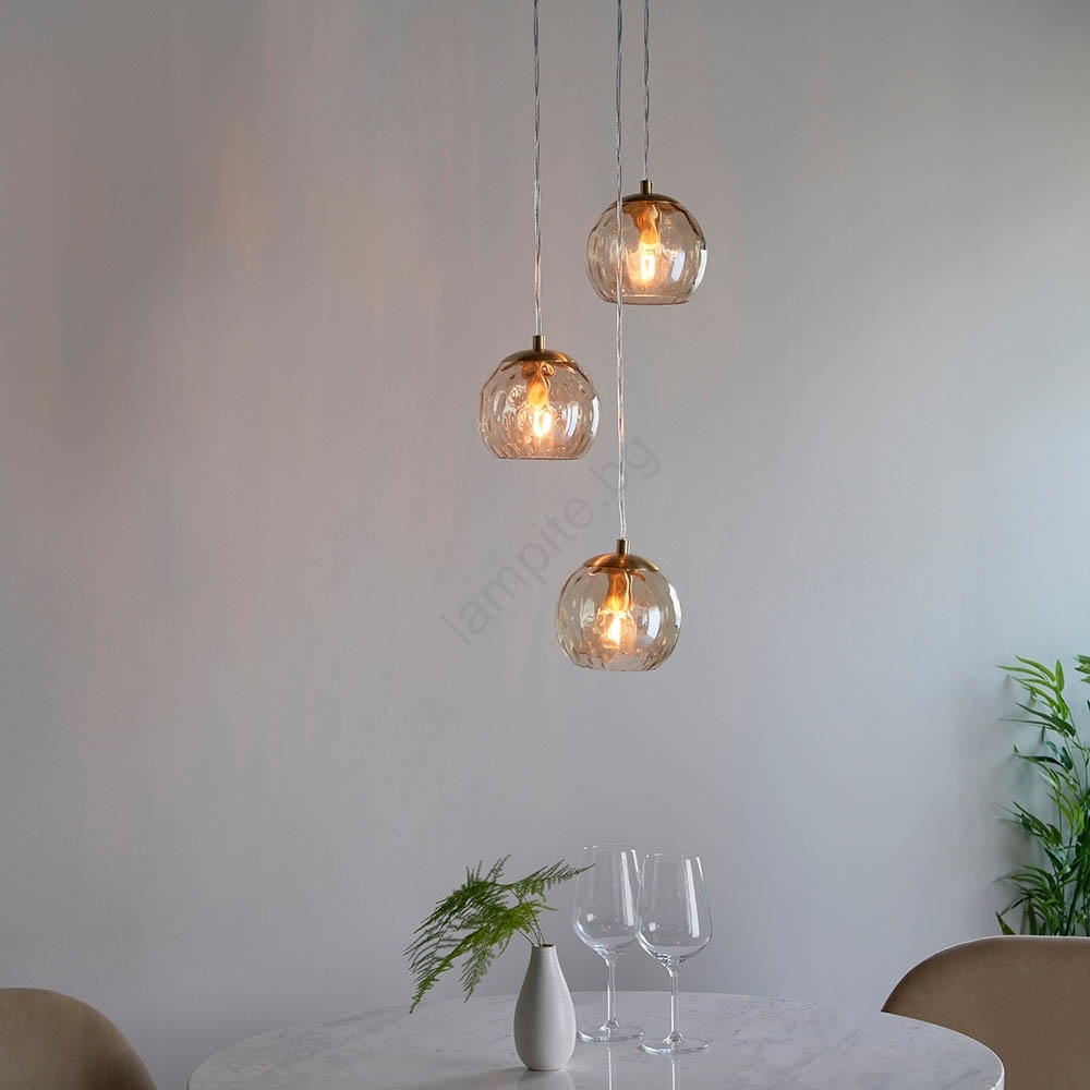 Endon 91971 - Полилей на кабел DIMPLE 3xE14/7W/230V златисто/опушено бежово