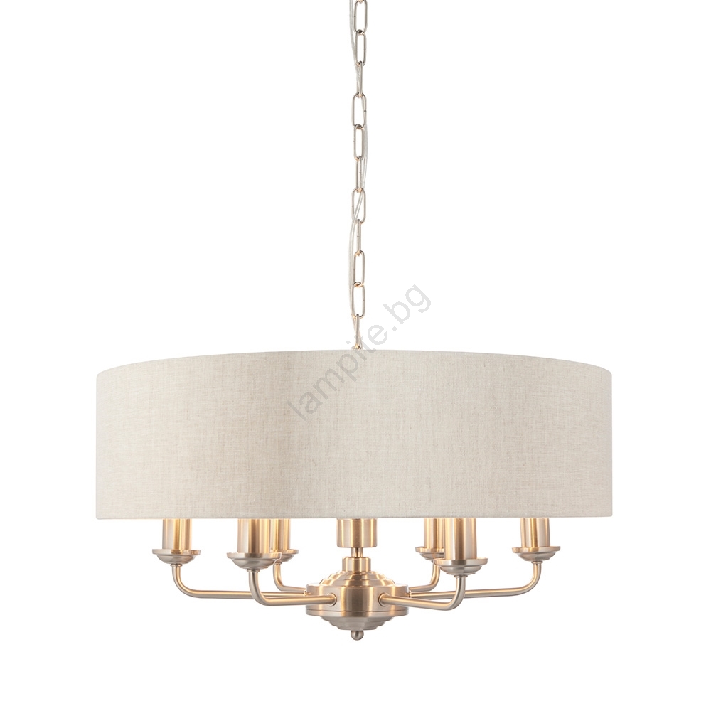 • Endon 94357 - Полилей на верига HIGHCLERE 6xE14/40W/230V Ø 55 cm бежов/матов хром