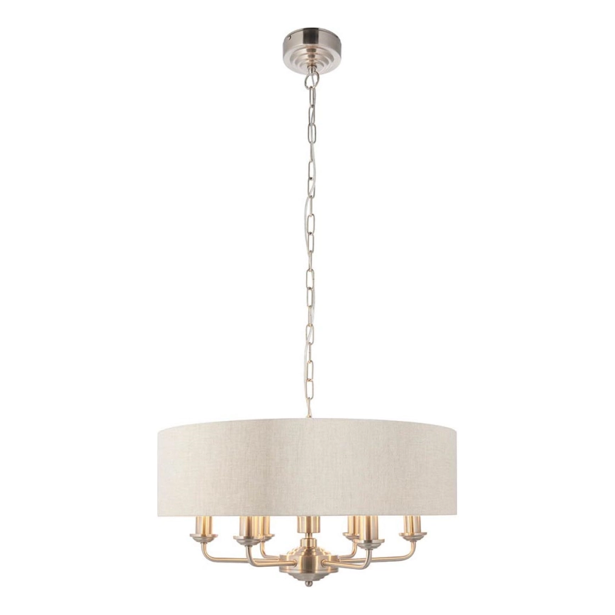 Endon 94357 - Полилей на верига HIGHCLERE 6xE14/40W/230V Ø 55 cm бежов/матов хром