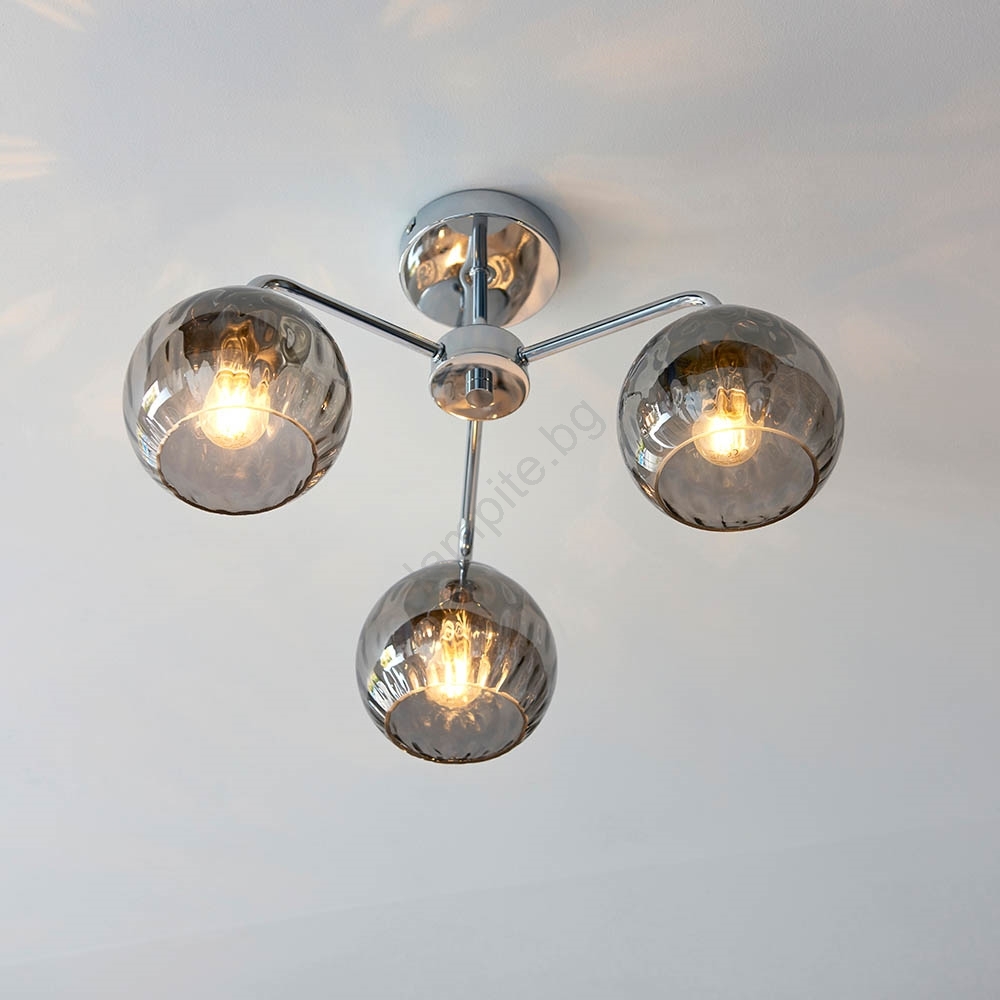 Endon 97971 - Полилей за повърхностен монтаж DIMPLE 3xE14/25W/230V лъскав хром/опушено сиво се отличава с приятен и функционален дизайн.  Подходяща е крушка с цокъл E14. Тук можете да закупите и други крушки на изгодни цени. Ще имате интересно допълнение към дома си.