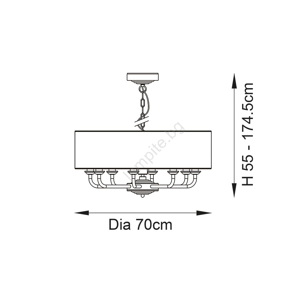 • Endon 99152 - Пендел HIGHCLERE 8xE14/40W/230V сив/матов хром Ø 70 cm