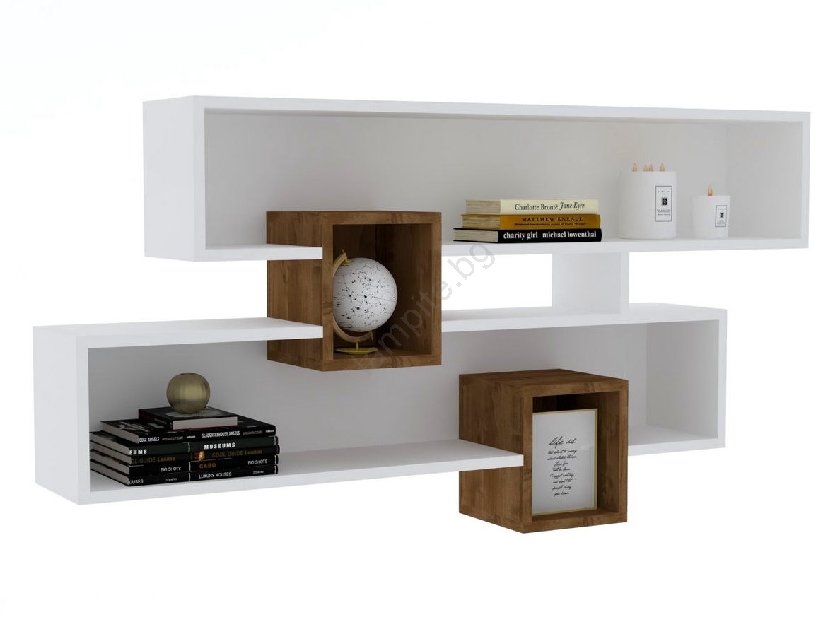 Стенна полица KAREN 120x72,2 cm бяла/орех