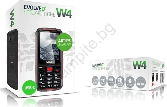 Evolveo - StrongPhone W4, водоустойчив Dual SIM телефон, черно/червено