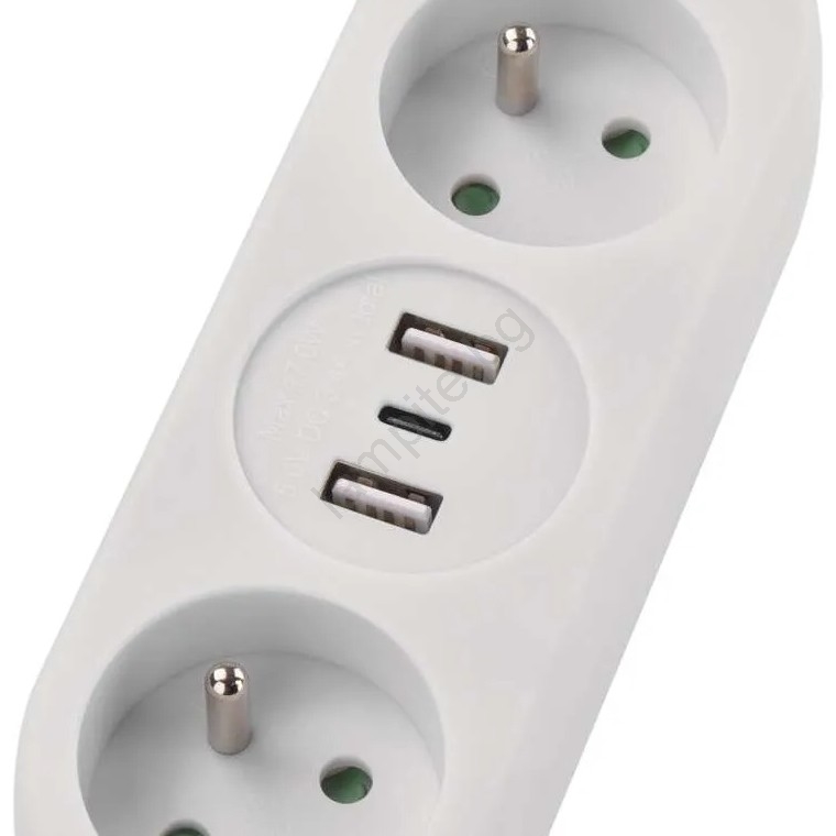 Удължителен кабел 2 гнезда + 2x USB-A + USB-C 1,4 м