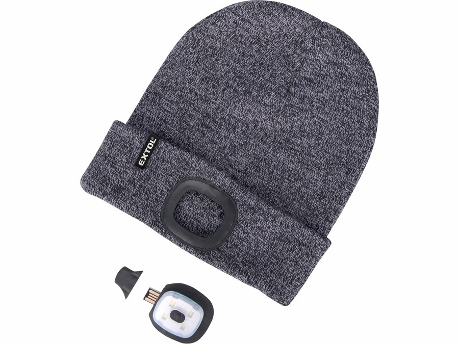 Extol - Шапка с челник и USB зареждане 300 mAh сива универсален размер