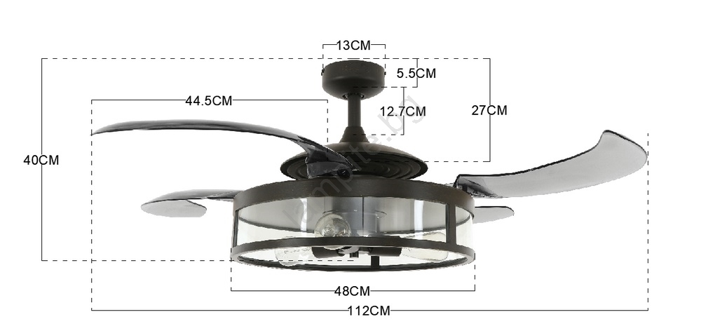 • След изключване, перките се сгъват обратно в тялото на вентилатора.