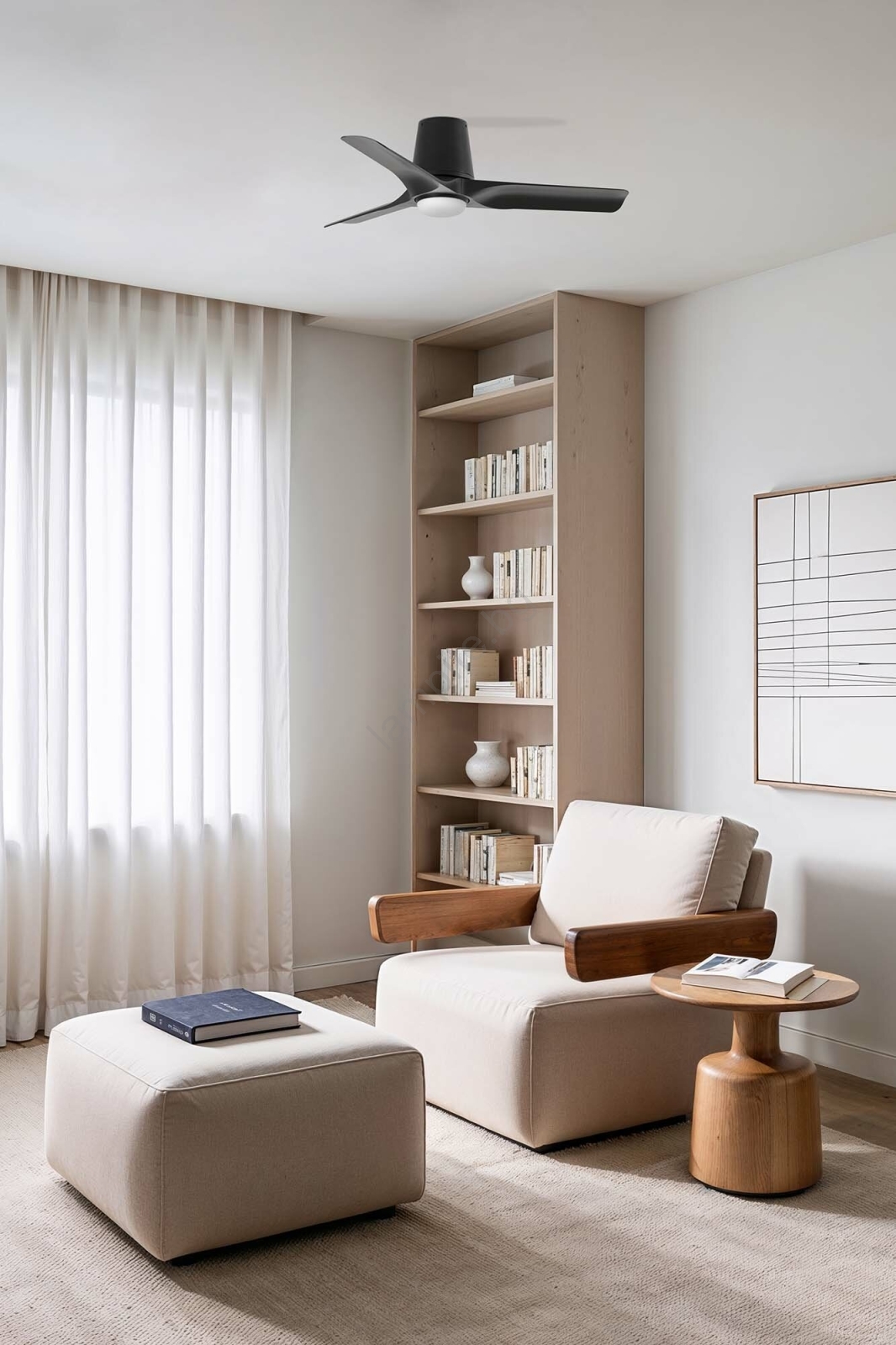 • Модерен вентилатор за таван с двигател за постоянен ток.