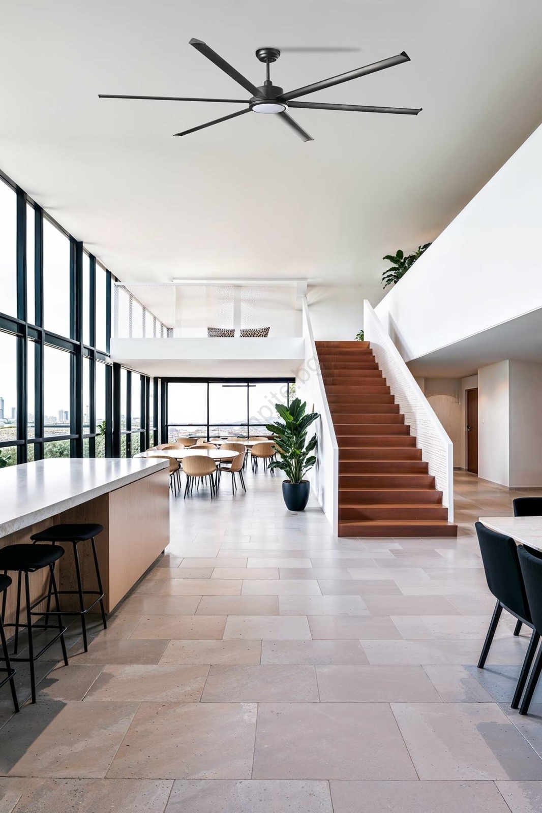 • Модерен вентилатор за таван с двигател за постоянен ток.