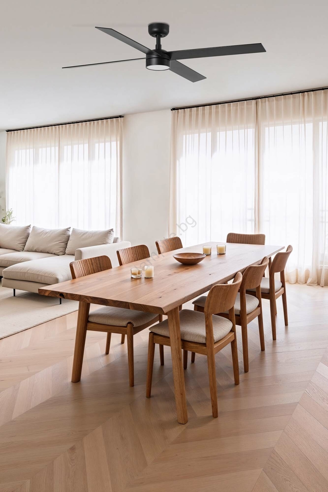 • Модерен вентилатор за таван с двигател за постоянен ток.