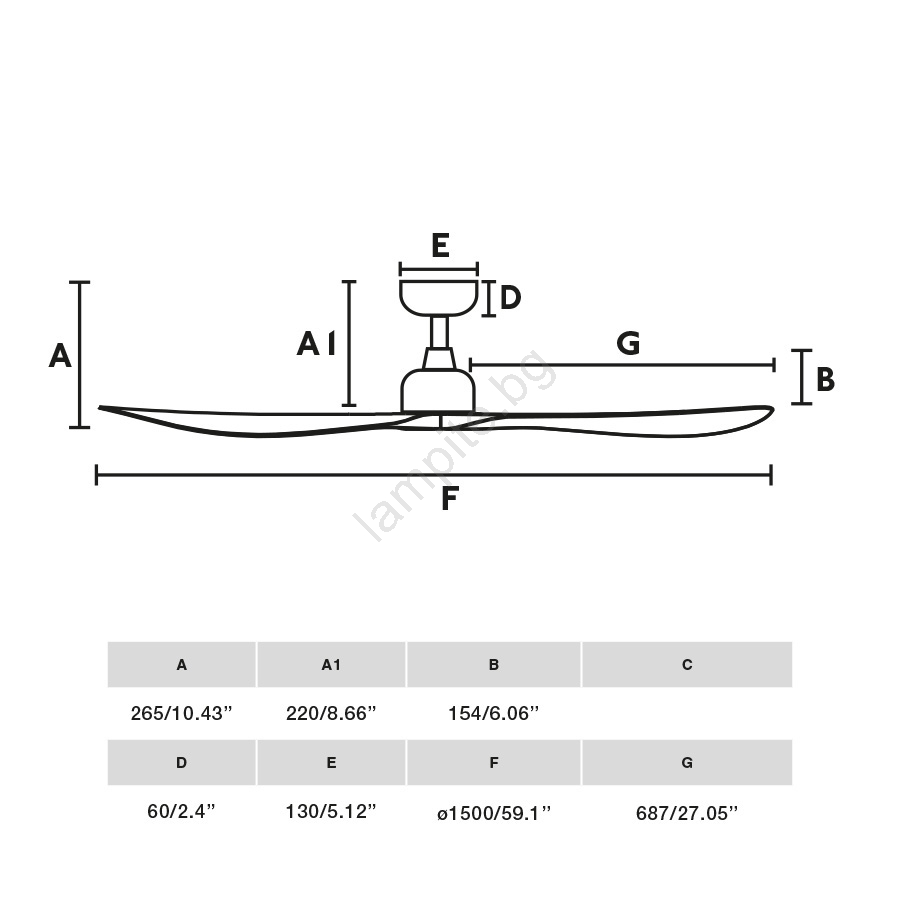 • Лопатките на вентилатора от ABS пластмаса са защитени от UV лъчи, което предотвратява повреди и промяна на цвета.