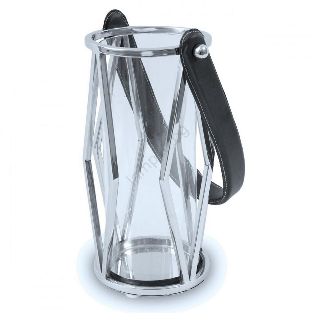 • Рамка на фенера, изработена от висококачествена полирана неръждаема стомана, и стъклен абажур.