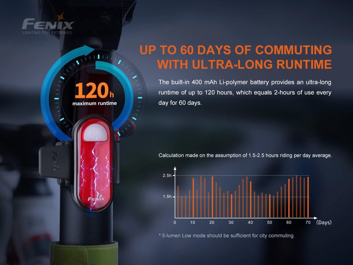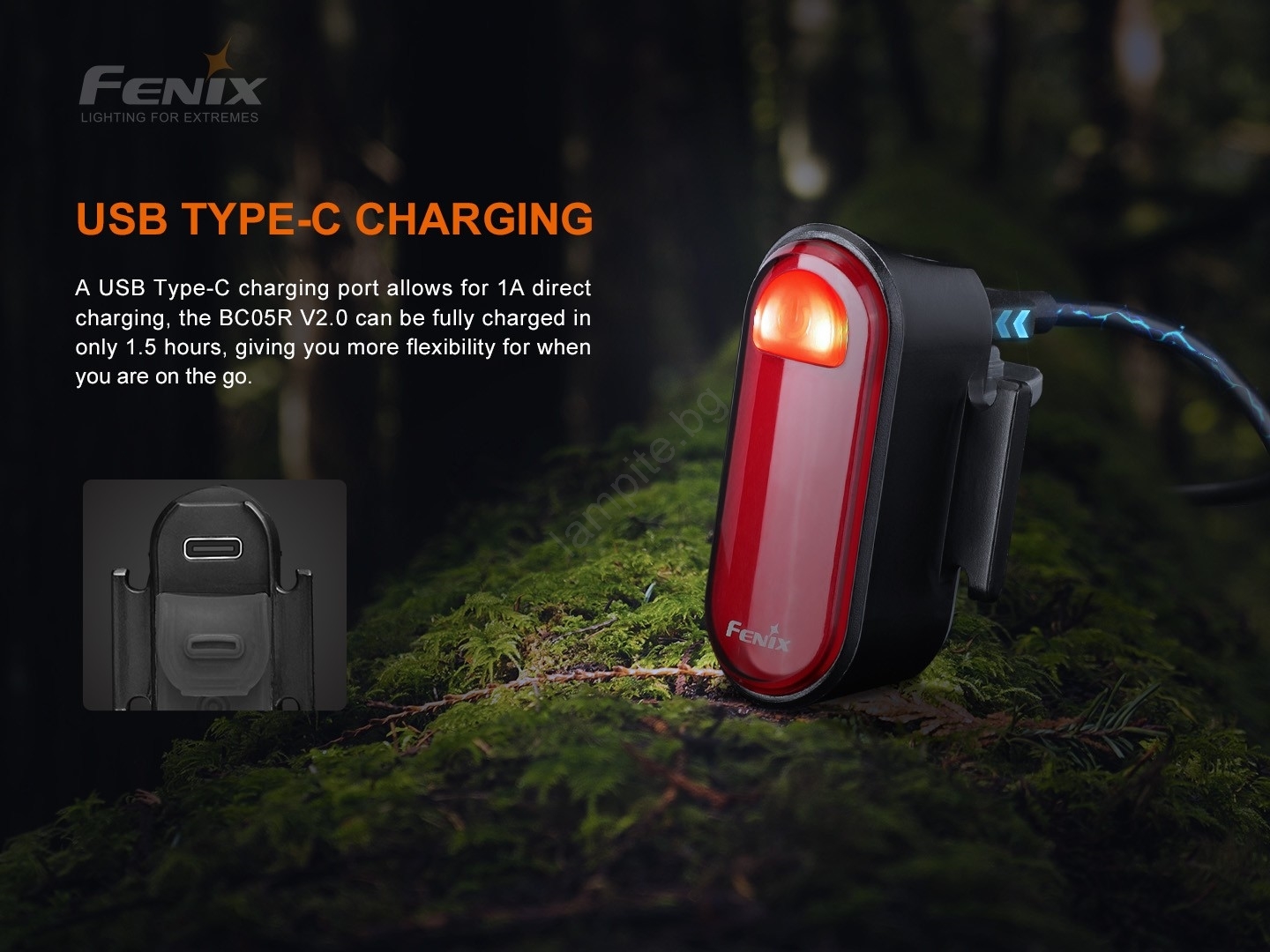 • LED Акумулаторно фенерче за задно колело Fenix BC05R V2.0.