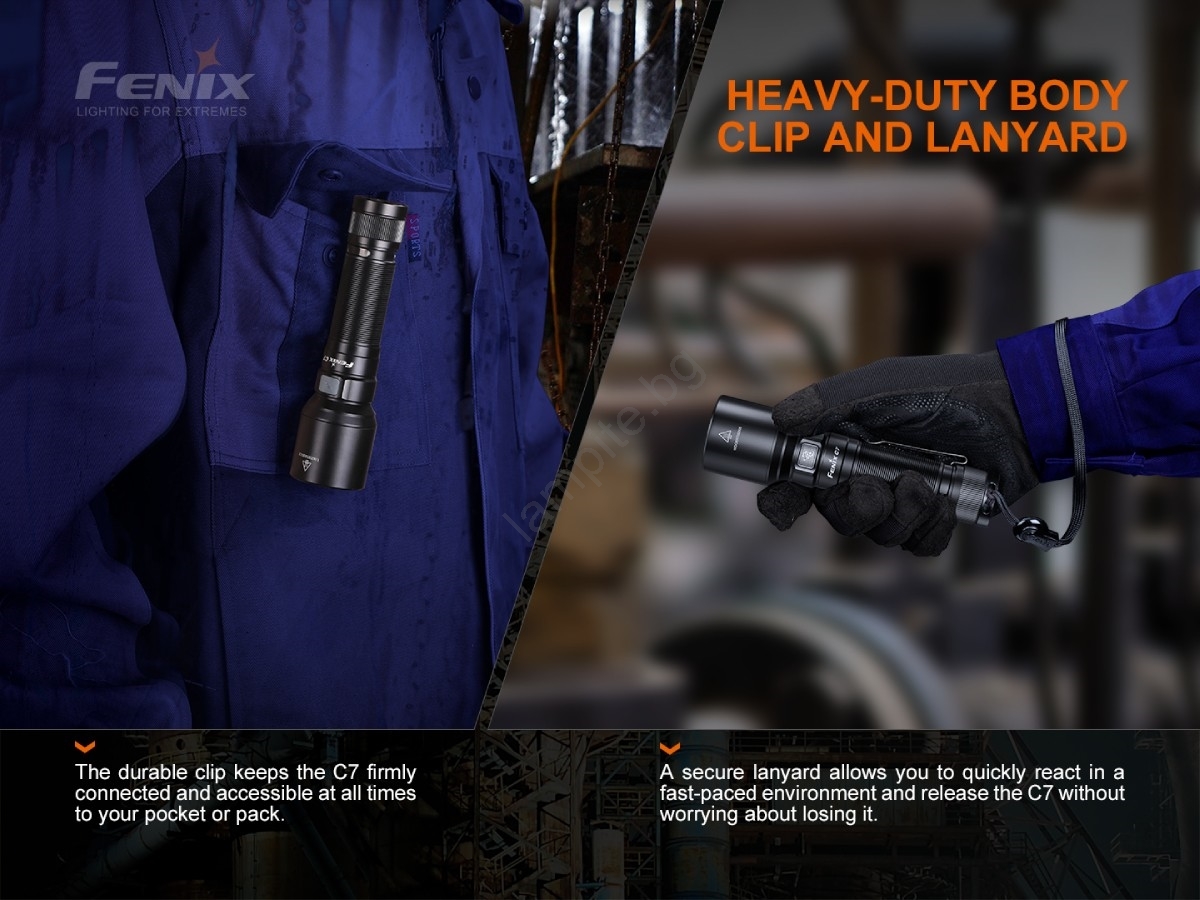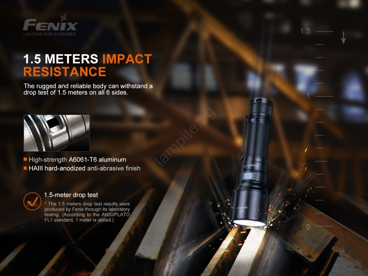 • Фенерчето е удароустойчиво на падане от 1 м височина, прахо- и водоустойчиво (2 м тяга).