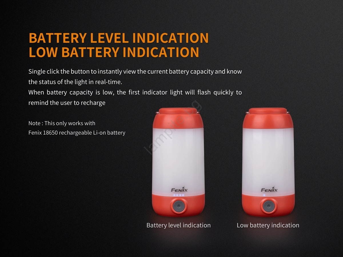 • В комплекта са включени фенер, батерия Fenix 18650 2600 mAh, резервно уплътнително O-пръстенче, карабинер за закачане и USB кабел.
