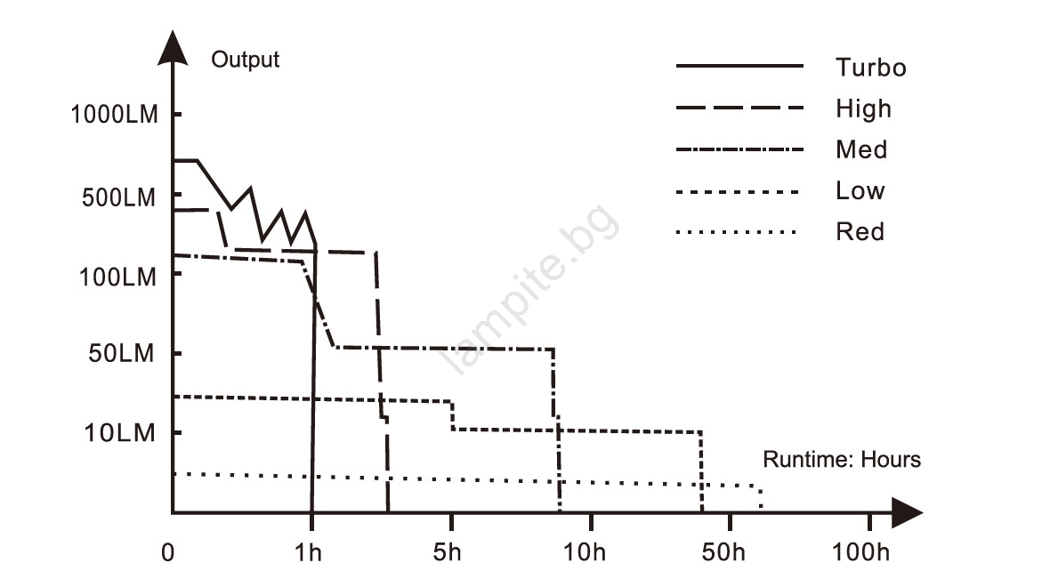 • Светлинният поток може да се превключва в реда 30 - 130 - 400 - 700 lm.