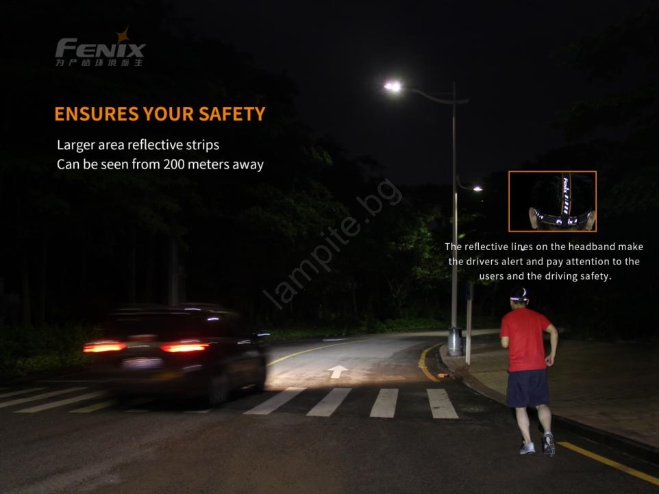 • В комплекта е включен Li-ion акумулатор Fenix 18650 (3400 mAh), ленти за глава, заряден кабел USB-C, резервен O-пръстен.