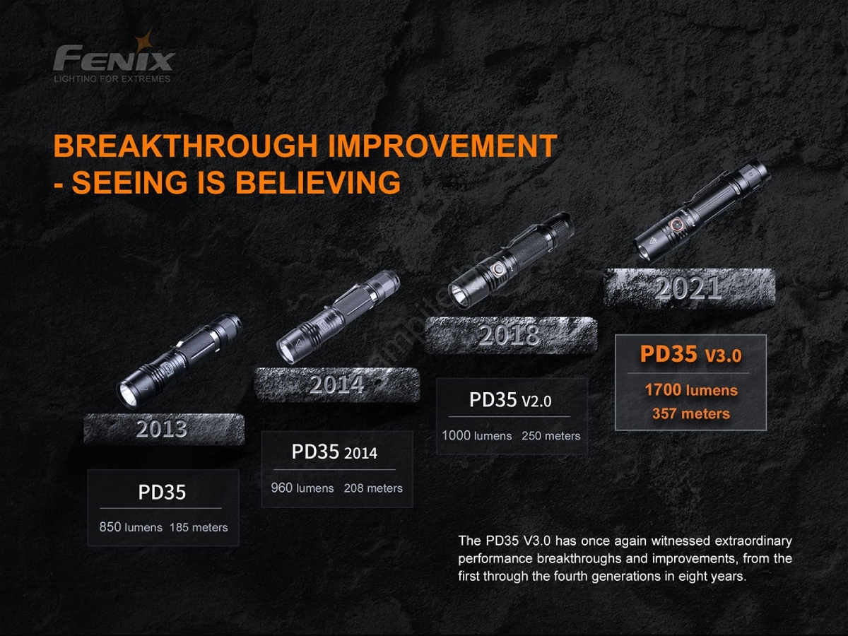 Fenix PD35V30 - LED акумулаторен фенер LED/USB/2xCR123A IP68 1700 лумена 230 ч 2600 mAh