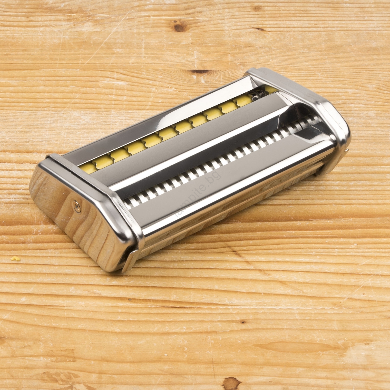 • Пастамашина 5 в 1: лазаня, таглиателе, спагети, фетучини или регинете, с лесни за използване режещи валове и манивела за винаги перфектни резултати.