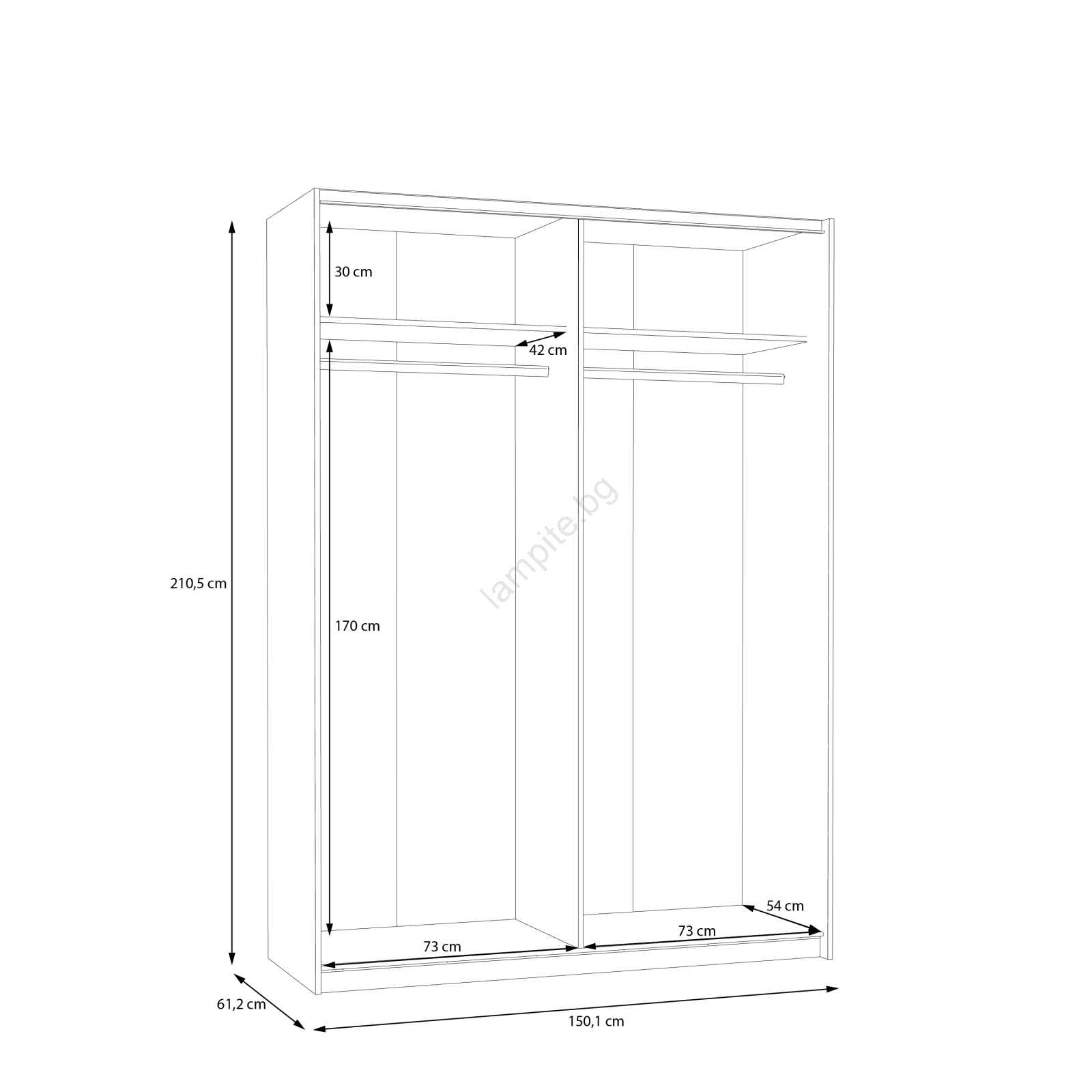 • Огледалната повърхност на гардероба е съвършено съчетание на функционалност и естетика, позволява ви да се видите в пълната си красота.