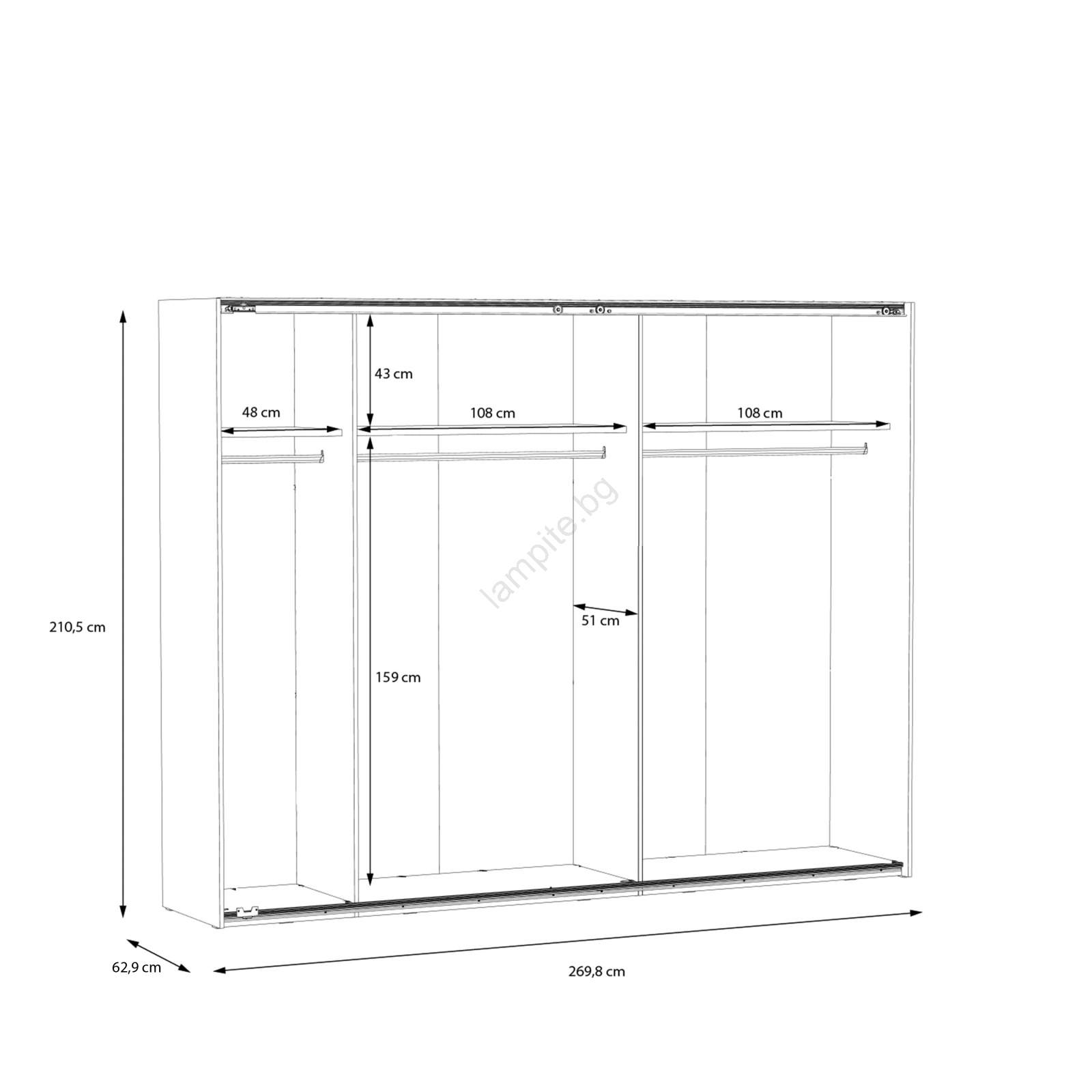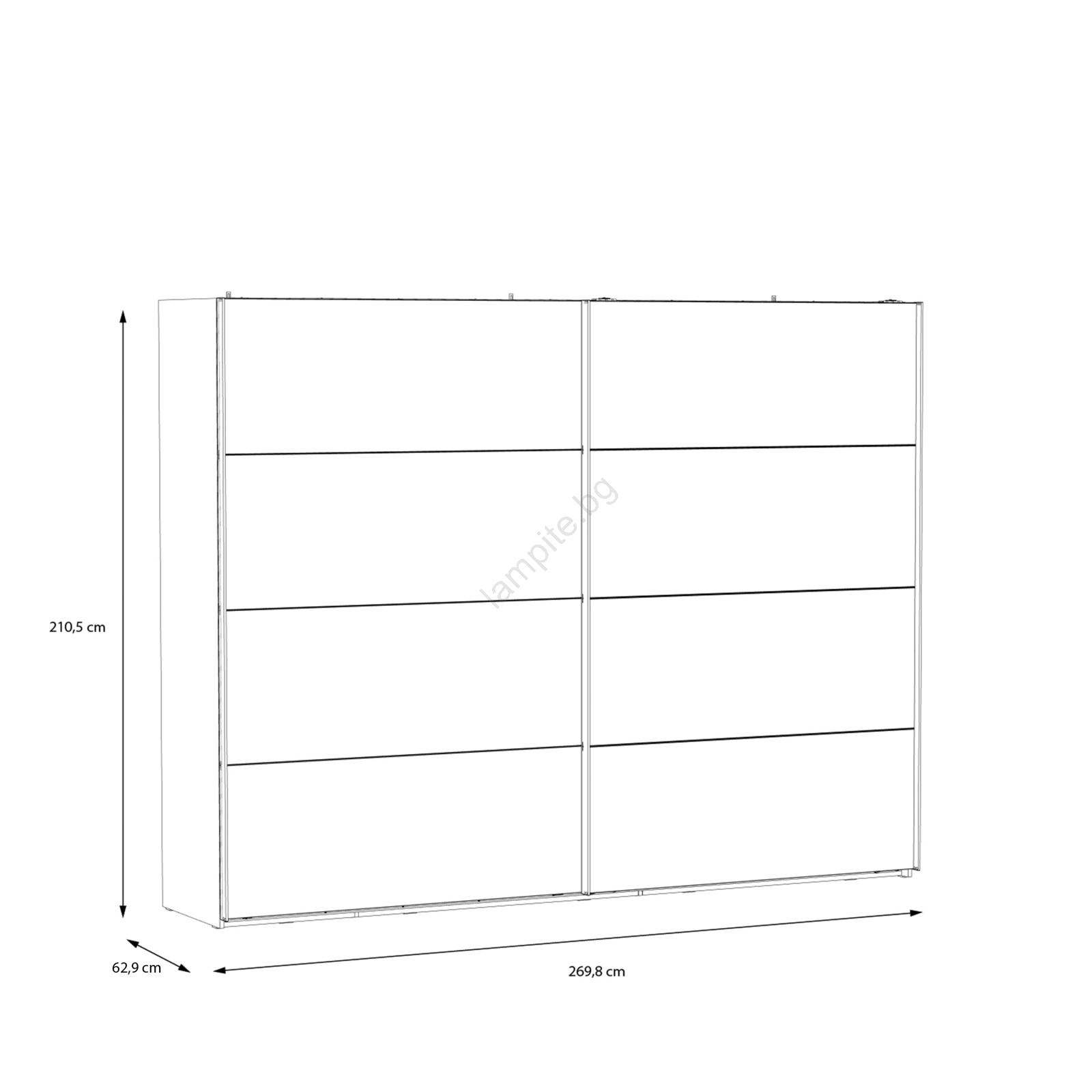 • Огледалната повърхност на гардероба е съвършено съчетание на функционалност и естетика, позволява ви да се видите в пълния си блясък.