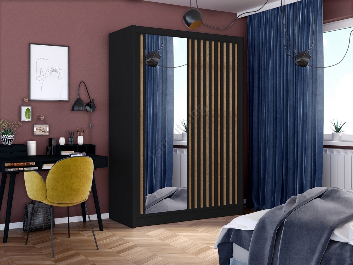• Гардероб SANTINO с огледало 150x215 cm черен/дъб крафт