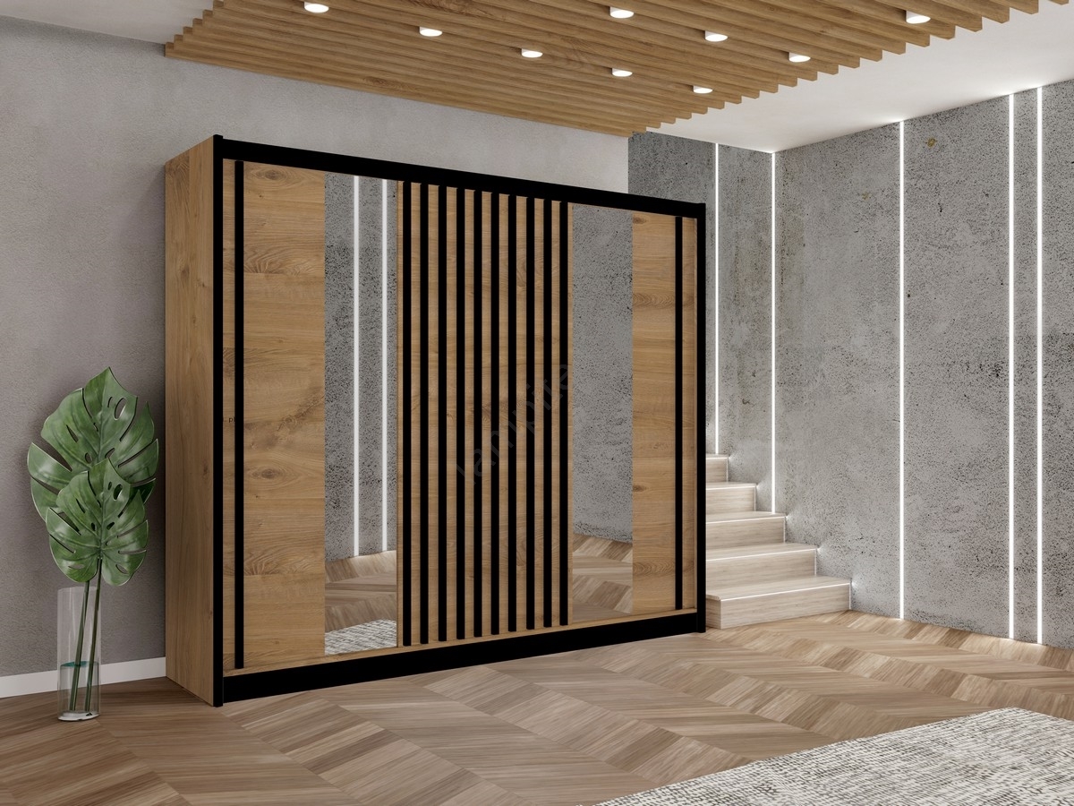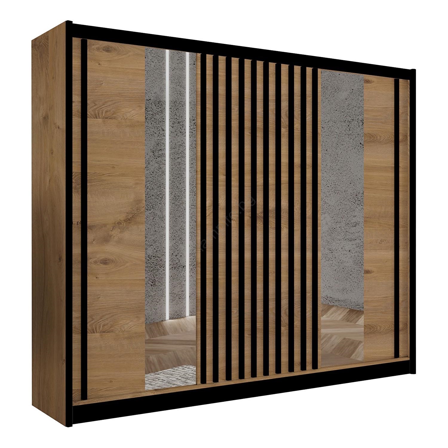 Gардероб с огледало SANTINO 250x215 см дъб крафт/черен